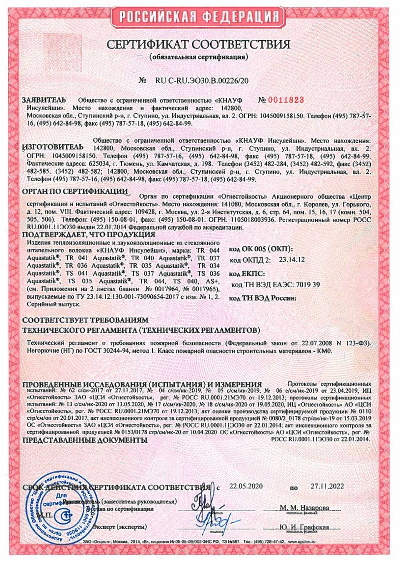 Сертификаты продукции Кнауф